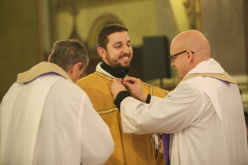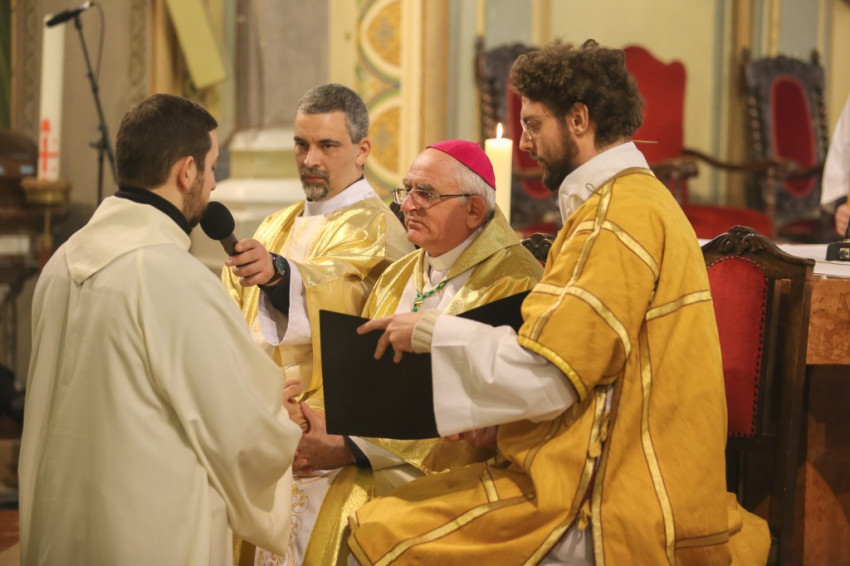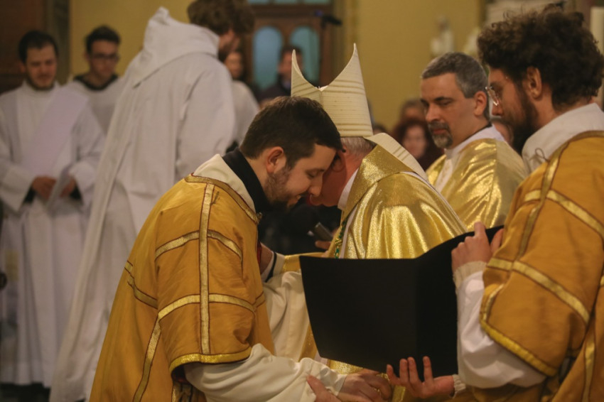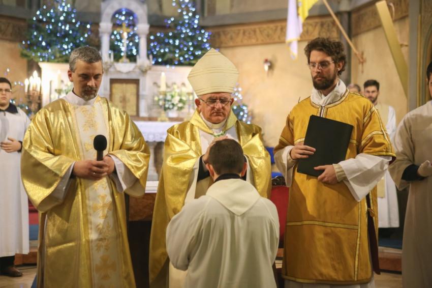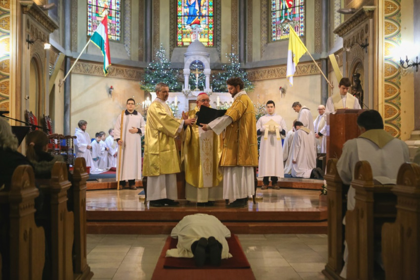 Varga László megyéspüspök homíliájában arra hívta fel a szentelendő figyelmét, hogy ő tanú, Isten választotta ki, hogy tanúságot tegyen a feltámadt Krisztusról. „Életed az üzenet, a szavak kevesek – hangsúlyozta a főpásztor. – Mondhatunk akármit, csak papolunk, ha nincsen mögötte fedezetként az életünk. Te vagy az üzenet, és mindenki azt fogja figyelni, hogy ez az üzenet mennyire jelenik meg az életedben. Istennek bemutatott szentmise lesz-e az életed?”