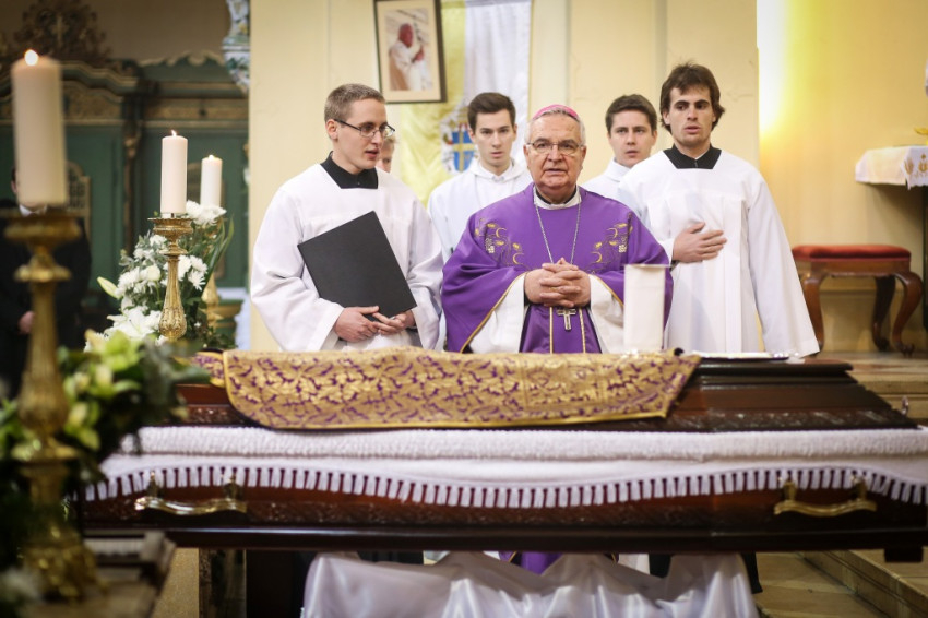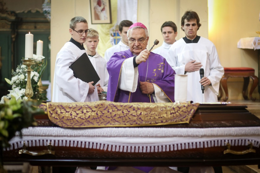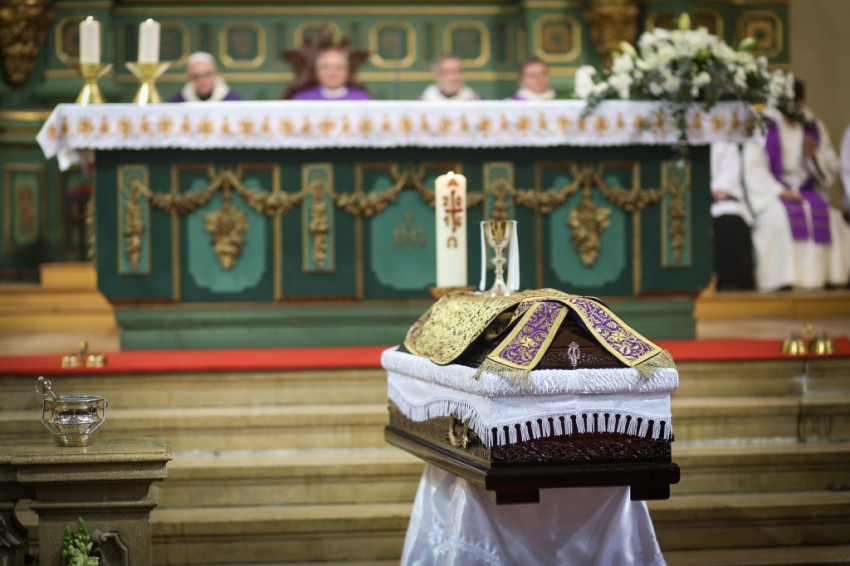 A szentmise kezdete előtt gordonka hangja és rózsafüzér imádság töltötte be a templomot, az oltár elé helyezett koporsónál sorra rótták le kegyeletüket Placid atya tisztelői. A koporsóra a szerzetes pap Szent Imre-templomban használt miséző kelyhét helyezték, és lengyel hívek küldtek ostyát, pontosabban oplatkát (ostya formájú édességet); Placid atya ehhez hasonló ostyával misézett hajdanán a Gulágon.