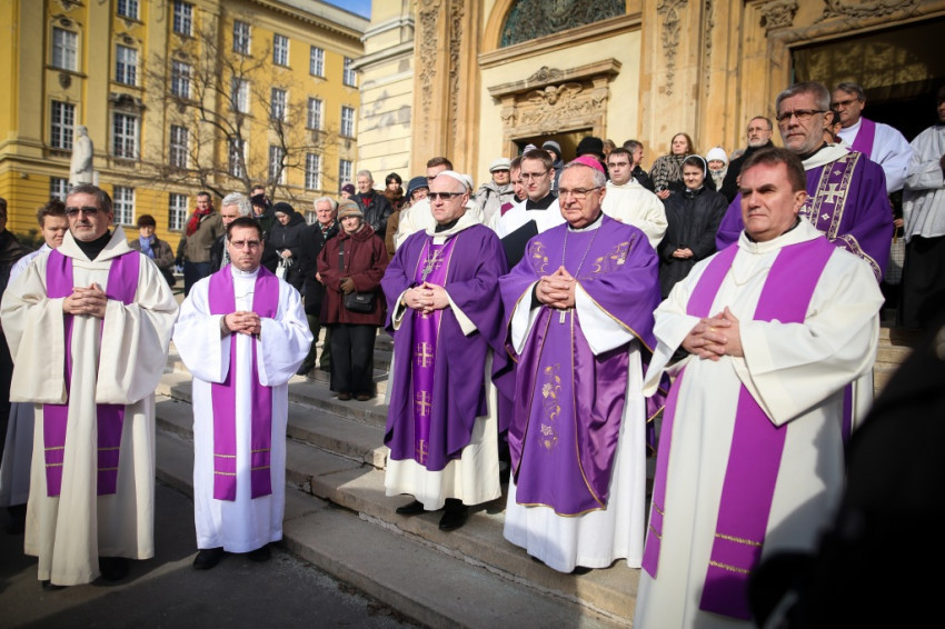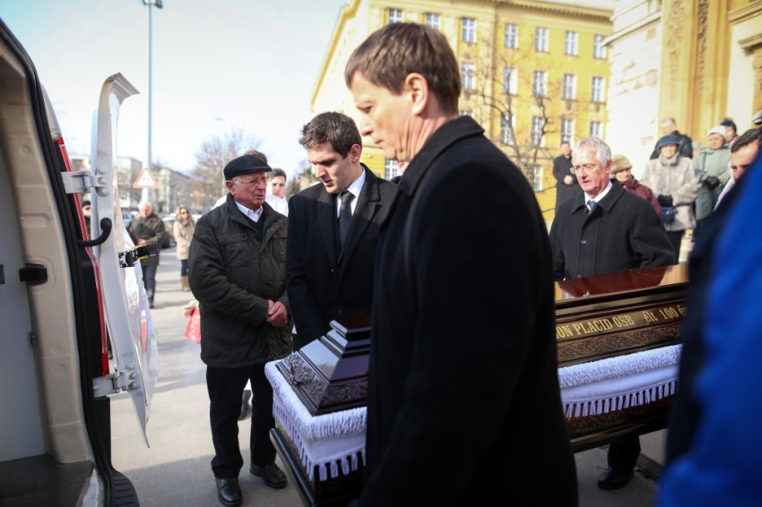 Az emlékezéseket követte a hamvasztás előtti beszentelés szertartása, amelyet Várszegi Asztrik főapát végzett, majd Placid atya koporsóját szentimrés férfiak ünnepélyes menetben vitték ki a templomból a halottszállító autóhoz.