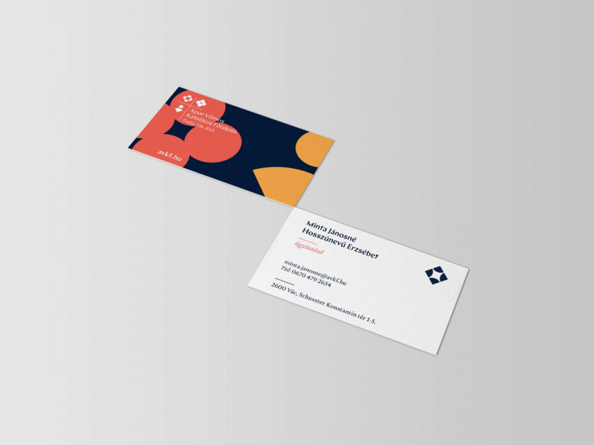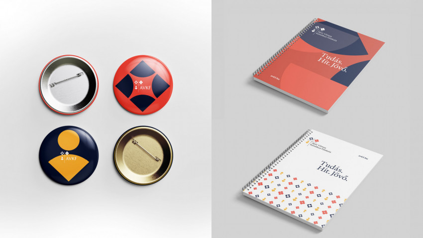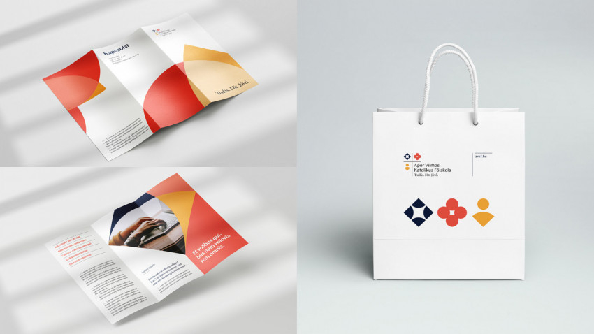 A négy jellemzőből három ikonként került bele az új logotípiába, míg a katolikus identitást a kereszt képviseli. A grafikai elemek élénk, telített, meleg és kontrasztos színkompozíciójának összhatása életigenlést, vitalitást sugároz, és ezek a színes elemek visszaköszönnek a vizuális kommunikáció más felületein is. Könnyedség, közvetlenség, pozitív életszemlélet, ugyanakkor a felsőfokú oktatási intézmény státuszához méltó rend, tisztaság és intézményi jelleg olvasható ki szándékunk szerint az új arculatból.”