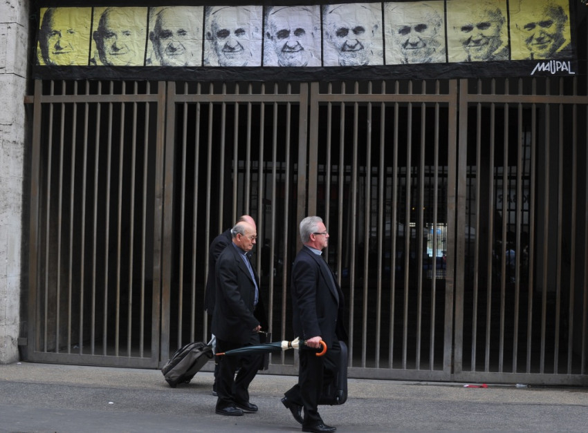 Hármas portré a római Borgo Pio utcában a "kegytárgyak" felirat alatt.