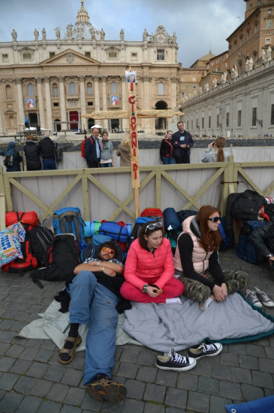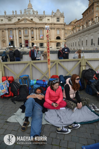 Sok zarándok eleve a Szent Péter téren szállt meg, nem bízva a véletlenre, hogy az első sorokból láthassák a szentté avatást. A bennfentesek szerint vasárnap legkésőbb reggel 5-re megtelik a tér...
