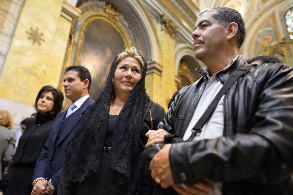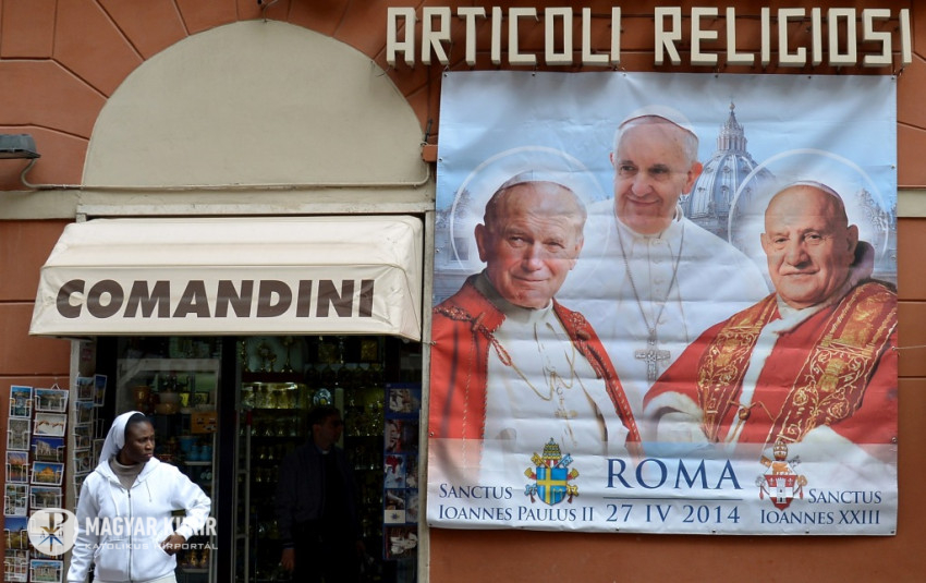 A Costa Rica-i Floribeth Mora, aki súlyos betegségéből II. János Pálnak tulajdonított csoda segítségével épült fel, megérkezik férjével szentmisére a római San Stanislao-templomba április 24-én. Floribeth 2011-es csodás gyógyulása meghatározó volt a kanonizáció során.