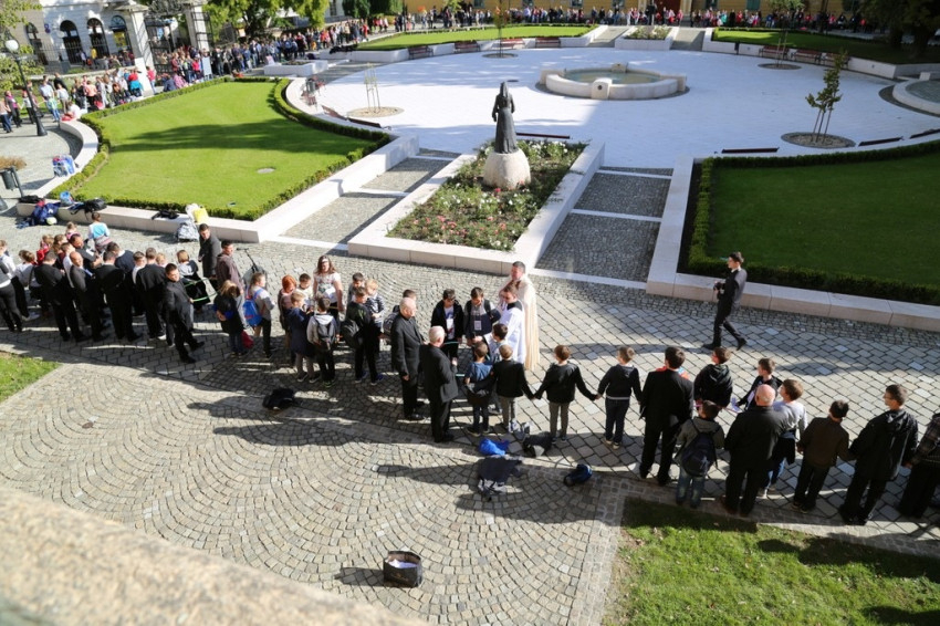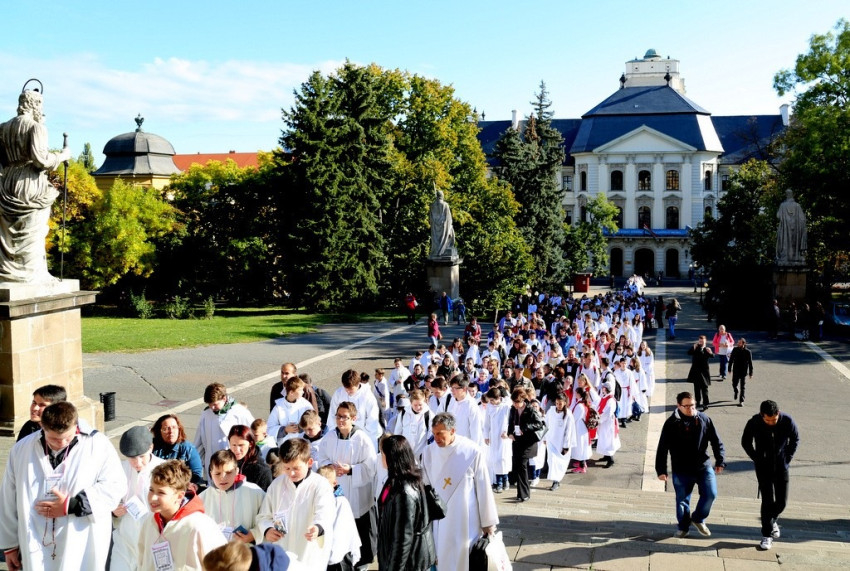 Jézus a ti korotokban rajtatok keresztül akar szólni – emelte ki Erdő Péter a ministránsokhoz fordulva. – Ahogy ti szoktatok beszélni egymással. A kereszténység alapkérdése nem elvont filozófiai probléma, hanem a személyes kapcsolat a Názáreti Jézussal. Amikor a rózsafüzért imádkozzuk, a Szűzanya vezetésével újra meg újra Jézussal találkozunk. A rózsafüzért imádkozva találjuk meg magunkat!