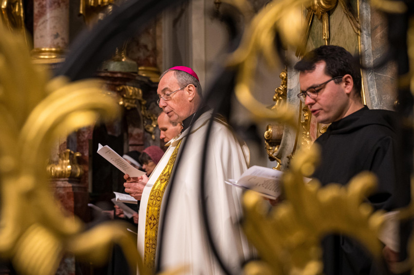 A szentmise előtt az egyházmegye szerzetesei zsolozsmát imádkoztak a hívekkel.