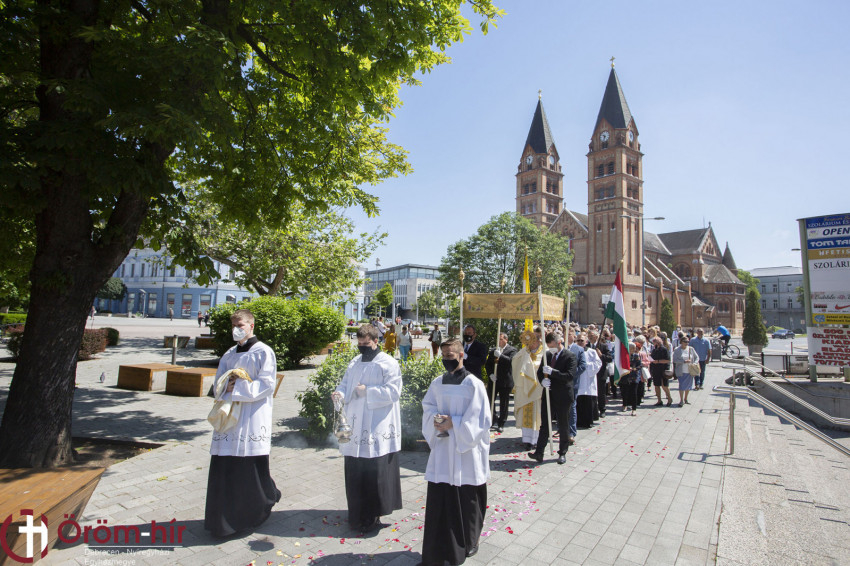 A város plébániai közösségeinek számos tagja vett részt a püspöki szentmisén, majd közös úrnapi körmenettel vallották meg a világ előtt hitüket az Oltáriszentségben jelen lévő Krisztusról, és tanúságot tettek az Egyházhoz tartozásukról.