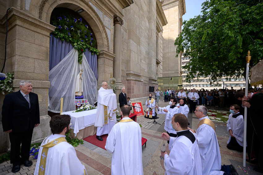 Erdő Péter bíboros, prímás a budapesti Szent István-bazilikában mutatott be úrnapi szentmisét és vezetett körmenetet.