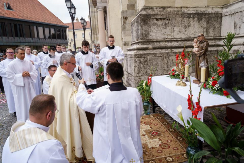 Székely János megyéspüspök a szombathelyi székesegyházban mutatott be úrnapi szentmisét.