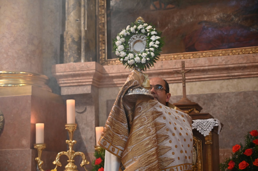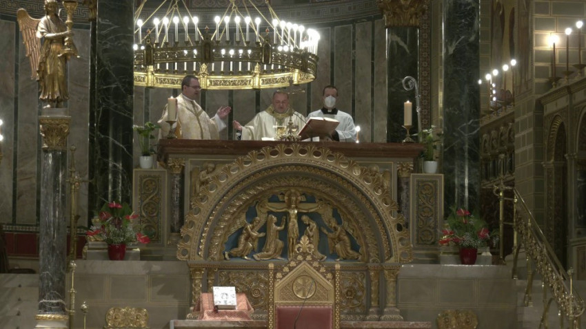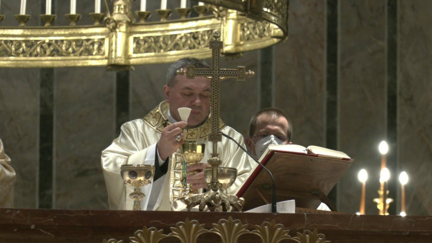 Majd arról beszélt a főpásztor, az apostolokat mélyen megérintette Isten szeretete, Krisztus jósága, amit megtapasztaltak az utolsó vacsora termében, és amit ésszel nem fogtak föl, de hittel elfogadtak: hogy a kenyérben és a borban, amit Krisztus adott nekik, ő maga lesz a társuk. Ő lesz táplálékuk, erejük gondban és bajban, örömben és bánatban, egész életükben, hogy Krisztussal járva az élet útját az Atyai házba érkezzenek. Meg kell értenünk: nekünk is szükségünk van rá, hogy Krisztus az Eucharisztiában az oltárainkon legyen, és így ott lehessen az életünkben, szívünkben és lelkünkben.