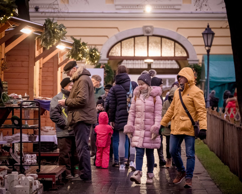 A püspöki palota gyönyörűen feldíszített udvarán, a karácsonyi faházakban megnyílt a kézművesvásár a Fehérvári Kézművesek Egyesülete szervezésében, és helyet kaptak a jótékonysági gyűjtések is a Karitász és a Gyermekvédelmi Központ sátrában.