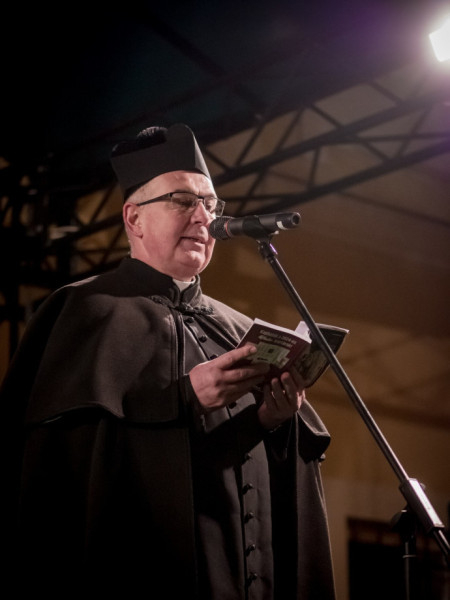 Ugrits Tamás pasztorális helynök, püspöki irodaigazgató, az udvar szervezője felolvasta az első adventi vasárnap evangéliumát. Majd arra hívta fel a figyelmet, a karácsony üzenete az, hogy