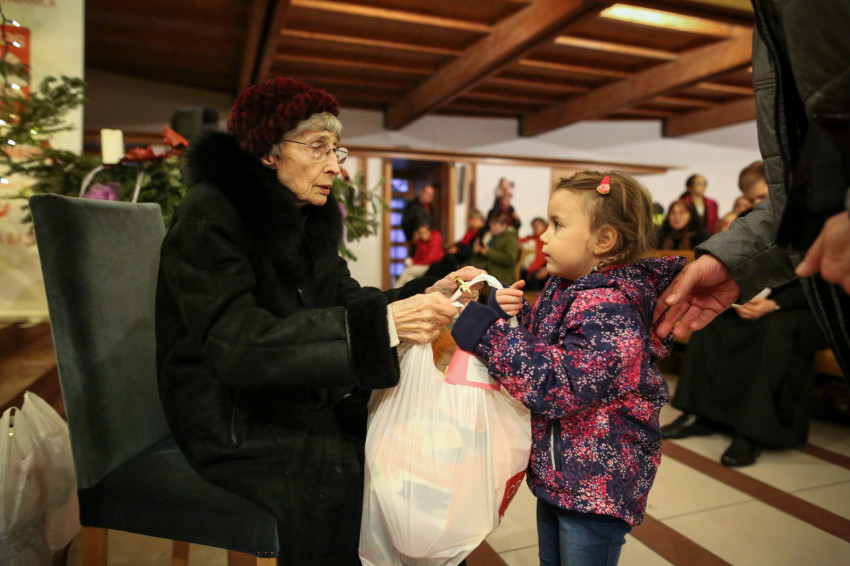 A köszöntő után egyre hangosabb lett a templom, hiszen Márton Andra, a karitász irodavezetője egyenként szólította a gyerekeket, majd Mádl Dalma asszony a lányoknak, Erdő Péter bíboros pedig a fiúknak osztotta ki a csomagokat. Izgatott zsibongás hallatszott a templomban, néhol egy kisautónak örült valaki, más egy régóta vágyott társasjátéknak, zseblámpának örült meg.