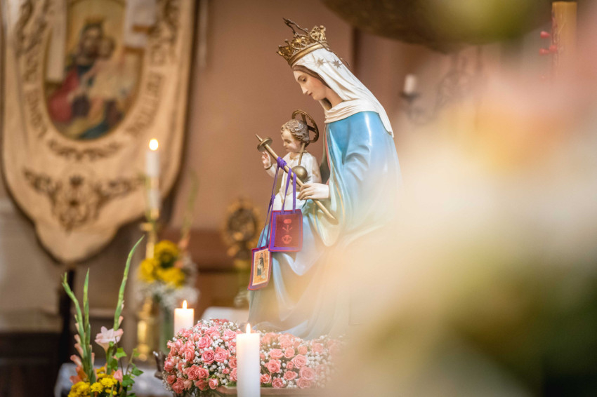 Másnap reggel a skapulárék megáldása előzte meg az ünnepi szentmisét. A kis nyakba akasztható textíliát ma már inkább egy érme jelzi, hogy az illető tagja a skapulárétársulatnak.