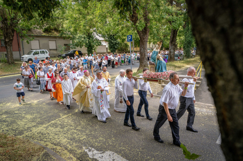 A szentmise végén ünnepélyes körmenet tartottak a Kármelhegyi Boldogasszony szobrával.