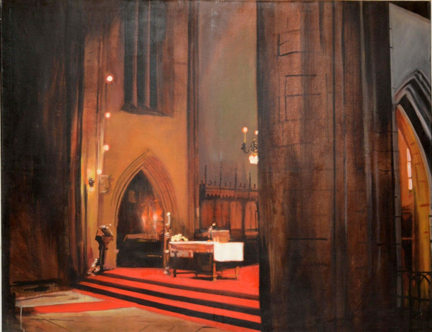 – Miért, azt állítottam, hogy nem? Egy férfinak különben is küzdenie kell. A Képzőművészeti Egyetemen Károlyi Zsigmond volt a mesterem, neki is vannak figurális képei. A tűz, az ember és a fény hármasa hozzám is közel áll. A gyertyafény világát mint átlényegülést festettem korábban. A pohár bor mögötti gyertya barokk csendéletet sejtet, de az Eucharisztiát is jelenti. Krisztus vérét, s minden szentmisén ott fénylenek a gyertyák az oltáron. A zarándokképek kapcsán a csendéleteket átvittem a tájba, és összekötöttem szakrális elemekkel.