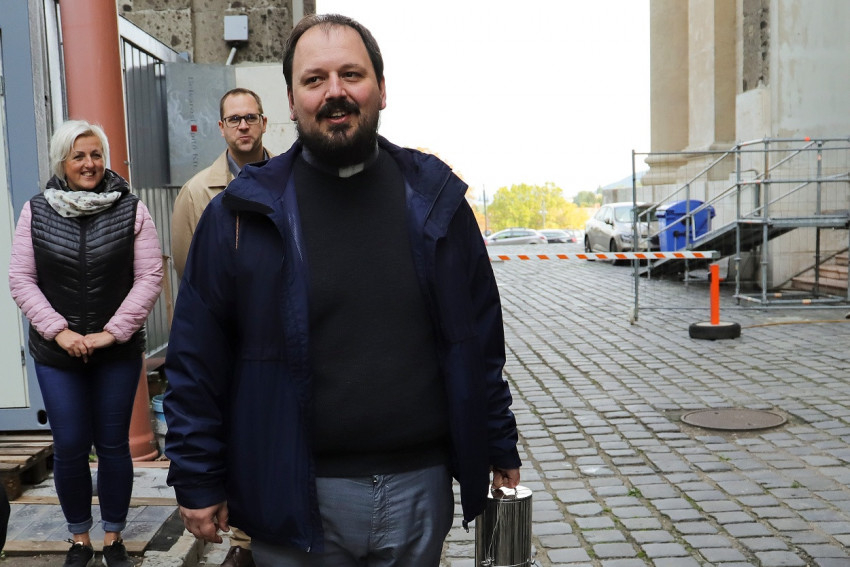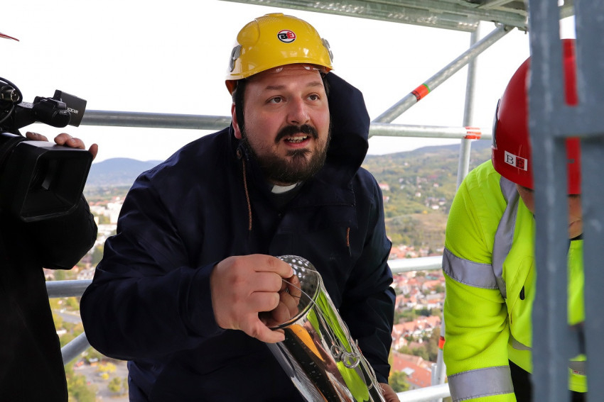 Török Csaba plébániai kormányzó megáldotta a tartó szerkezetet, majd a jelenlévők elénekelték a Boldogasszony Anyánk kezdetű ősi éneket, a bíborosi irat lelkületével imádkozva Magyarországért, édes hazánkért és keresztény közösségünkért.