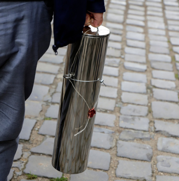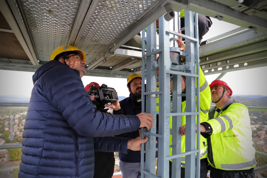 A kereszt rézborításának visszaépítésével időszerűvé vált a henger végső elhelyezése. A folyó munkálatok üteméhez alkalmazkodva, viszonylag gyorsan került kijelölésre az időpont. A behelyezésen megjelent Völner Pál államtitkár, a térség területi képviselője, valamint Hernádi Ádám esztergomi polgármester is.