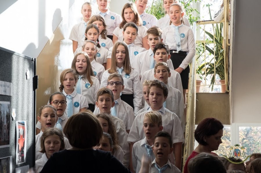 Az ünnepség az iskola kórusának előadásával kezdődött, majd Grátz Ádámné, az intézmény igazgatója és Udvardy György megyéspüspök köszöntötte a diákokat.