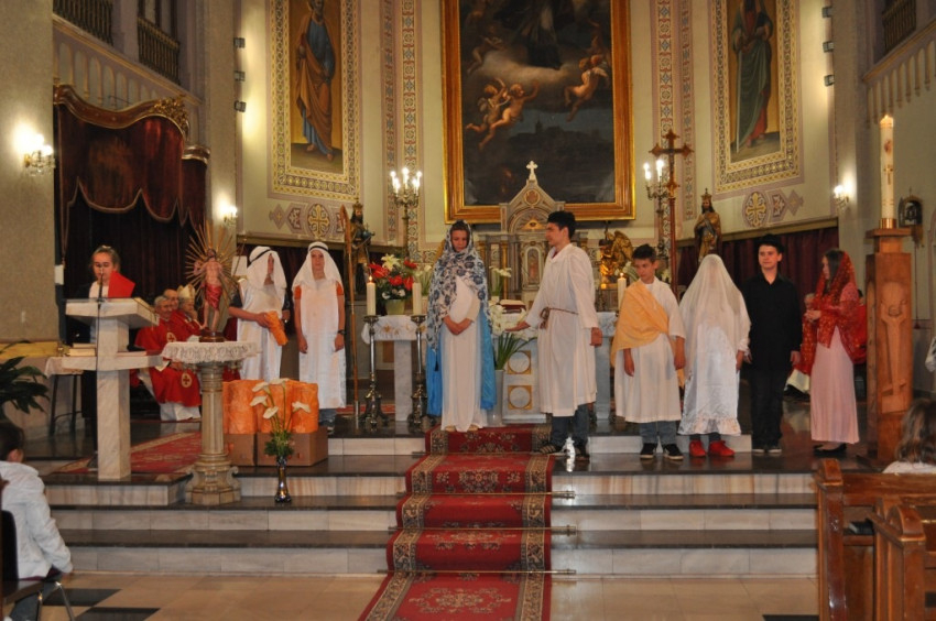 A liturgiát követően a szentmisén részt vevők megtekinthették a hittanosok közelmúltban lezajlott versenyén bemutatott előadásokat.