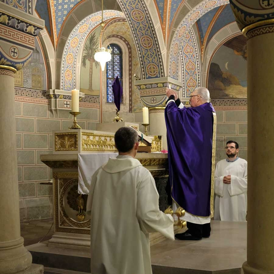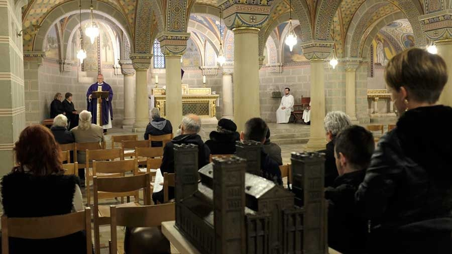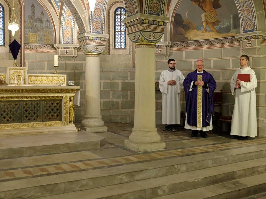 A székesegyház altemplomában szentmisét mutatott be a nyugalmazott főpásztor, majd a kriptában lucernáriumot tartott a hívekkel együtt.