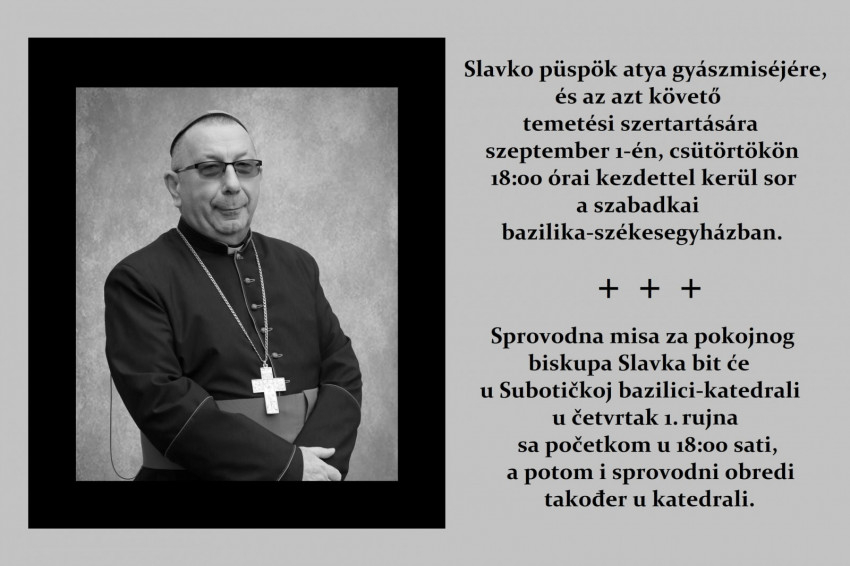 Večerin Slavko temetésének időpontjáról a Szabadkai Egyházmegye időben tájékoztatja a nyilvánosságot.