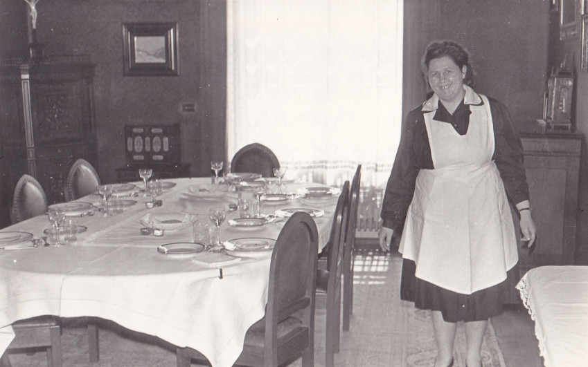 Az első években sokat dolgozott a rend konyháján, majd az óvodában volt dadus. Innen került vissza ismét konyhai, fizikai munkára. Télen négykor kelt, ő gyújtotta be az összes kályhát. Mire a diákok megérkeztek, már meleg fogadta őket. Így emlékezett vissza ezekre a kezdeti dolgos évekre: „Mindig jókedvünk volt, mindennek tudtunk örülni.”