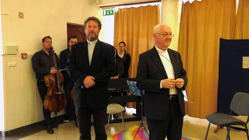 Az iskola diákjai verssel, virággal köszöntötték a főpásztort, majd a Symphonia Alapfokú Művészeti Iskola növendékeinek műsorát tekinthették meg a cigánypasztorációs pedagógiai műhely résztvevői.