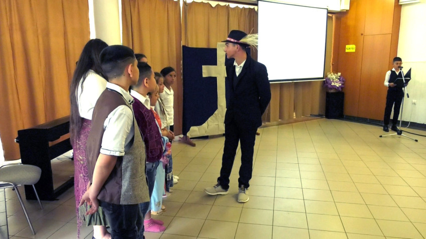 A szakmai találkozón az iskola színjátszói rövid jelenetet adtak elő, melyben Krisztus szenvedéstörténetét és a cigányság életét kapcsolták össze.