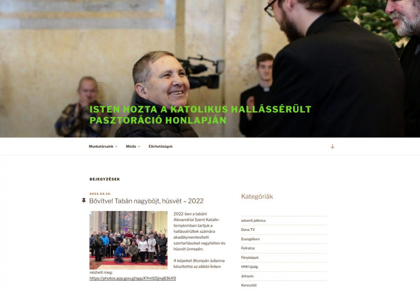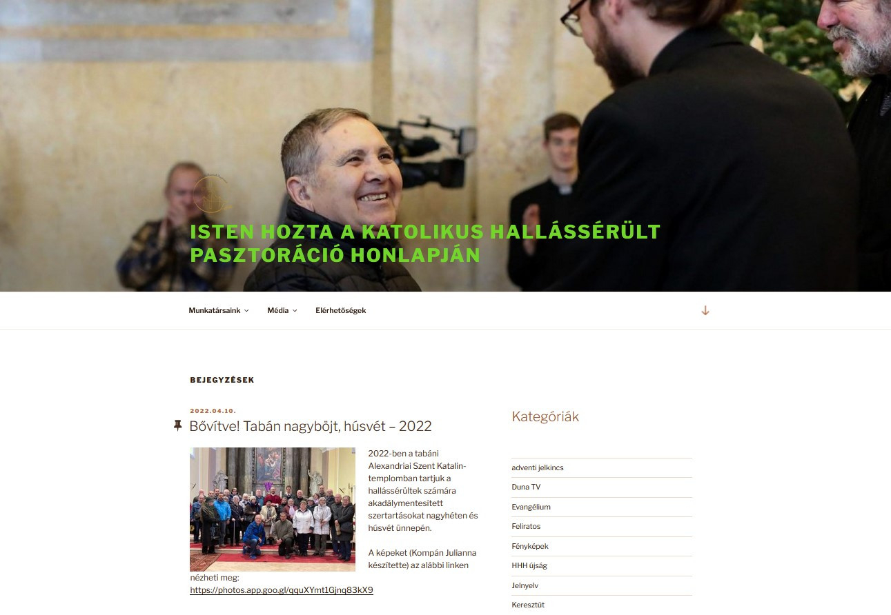 Az eddig is követhető Facebook-oldal mellett a hallássérültek pasztorációját végző munkatársak fontosnak érezték egy olyan informáló és gyűjtőoldal létrehívását is, ahol mindig megtalálhatóak a hallássérült híveket érintő legfrissebb hírek és beszámolók. A honlap elsődleges célja láthatóvá tenni a pasztorációs tevékenységet és szolgálatást minden érintett számára, és informálni őket az elérhető programokról.