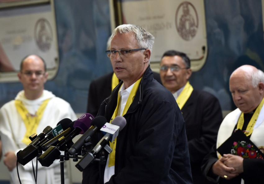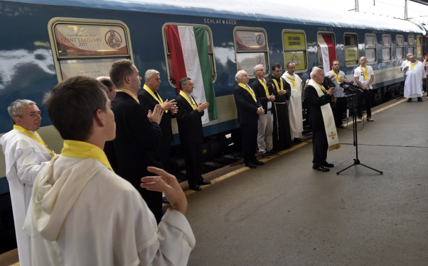 Tamás József, a Gyulafehérvári Főegyházmegye segédpüspöke, a zarándokvonat lelki vezetője megemlítette, hogy a zarándoklatra ezúttal magukkal hozták a gyulafehérvári Szent László-ereklyét, amely az idei zarándoklat fontos szimbóluma.