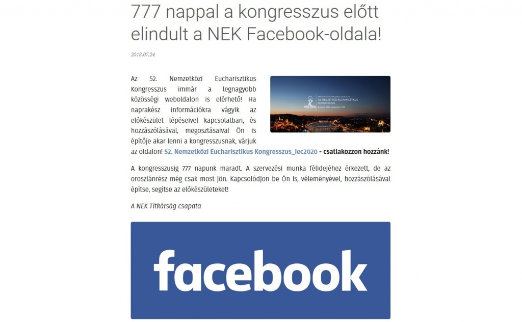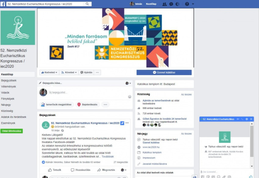Az 52. Nemzetközi Eucharisztikus Kongresszus / iec2020 Facebook-oldalhoz hív csatlakozásra a NEK Titkárság csapata.