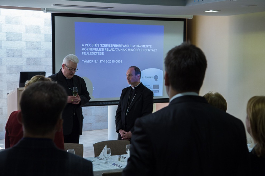 Dózsa István, a Székesfehérvári Egyházmegye vagyonkezelője ismertette a pályázatban vállaltakat és a projektben rejlő lehetőségeket. Mint elmondta, a minőségorientált fejlesztés arra ad lehetőséget, hogy az intézményfenntartásban, a finanszírozásban mutatkozó nehézségek mellett nívós munka folyhasson az intézményekben. Kiemelte: lehetőség lesz arra, hogy a problémákra közösen keressék a válaszokat, egységes számviteli rendszert alakítsanak ki, közös stratégiai elképzelést dolgozzanak ki azt illetően, mitől katolikus az iskola, és az egyes intézmények jó gyakorlatait megosztva egymással, új pedagógia módszereket vezethessenek be az iskolarendszerbe.