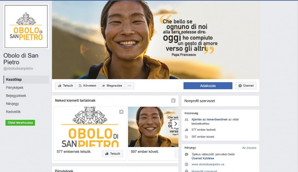 A „péterfillér” pápai adománygyűjtés (Obolo di San Pietro) közösségi oldalon való jelenlétének célja, hogy a mindenki számára nyitott virtuális térben megosszák és megismertessék a nagy múltra visszatekintő, pápai szándékra végzett karitatív tevékenységet. Az intézmény elő kívánja segíteni a párbeszédet mindazokkal, akiknek közös célja a leginkább rászorulók, illetve a karitatív tevékenységek konkrét támogatása.