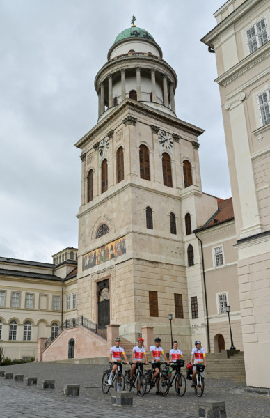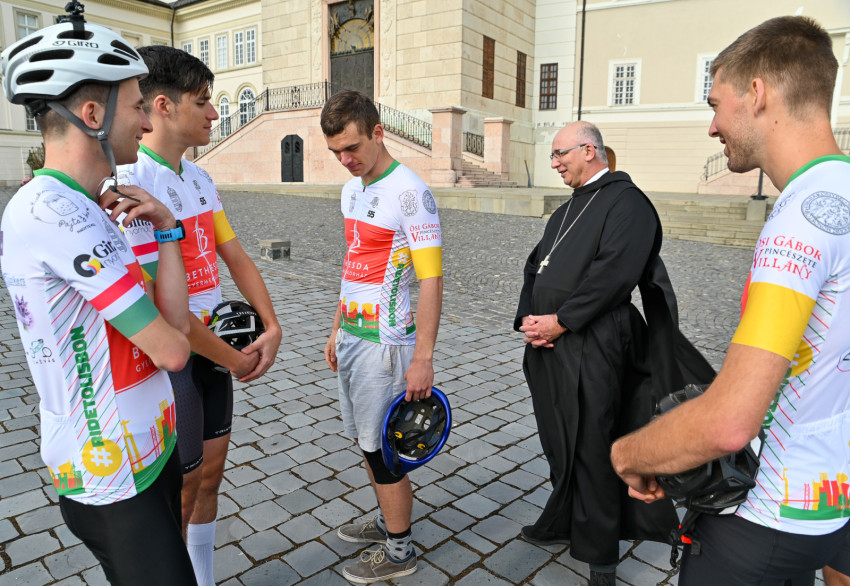A tervek szerint – és ha Isten is úgy akarja – a többiek azonban teljesítik a távot. A fiúk „alumnitársuk”, a pannonhalmi főapát ajánlásával és személyes buzdításával indultak útnak. Hortobágyi T. Cirill búcsúzóul felidézte egykori pannonhalmi diákévei biciklitúráit. A főapát 1973 és 1977 között volt a gimnázium tanulója. Egykori osztályfőnöke, Lövey J. Félix OSB atya kerékpáros kirándulásokat is szervezett az osztálynak. „Akkor még nem ilyen modern biciklikkel mentünk…; váltó nélküli Csepel biciklik voltak, amelyeken csak úgy nyüsszögött az ócska dinamó” – mesélte nevetve, hozzátéve, hogy azokon nem is vágtak neki több ezer kilométeres útnak.