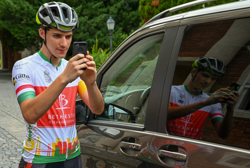 Csongi szintén kisiskolás kora óta teker rendszeresen, de csak hobbi szinten a családdal, a plébániai közösséggel. A Mecsek oldalában lakik, így a napi szintű hegymenet is mindig megvolt az iskolából hazafelé is. Pannonhalmára kerülése után sokat biciklizett osztálytársaival is, akikkel manapság is rendszeresen túráznak együtt. Ezeket általában egykori osztálytársa, Andris szervezi – s mint kiderült, ezt a lisszaboni zarándoklatot is ő kezdeményezte.