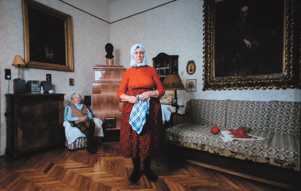 A nagyszabású életműtárlat befejezéseképpen az utolsó termekben látható képek a régi idők arisztokratáinak freskóméretű beállított festményeire emlékeztetnek. Azzal a nagy különbséggel, hogy ezeken a képeken nem éppen gazdag asszonyokat láthatunk, amint egy szoba közepén állnak, vagy Budapest egyik forgalmas terén, vagy az egyik aluljáróban. A hagyományos paraszti világ lassú eltűnésével párhuzamosan a széki asszonyok budapesti munkavállalása a munkaerő-vándorlás egyik jellegzetes formája lett. A takarítás, az idős városi hölgyek gondozása és a népművészeti termékek árusítása jövedelmet biztosít, amelyet az erdélyi asszonyok elsősorban otthon maradt családjukra fordítanak.
