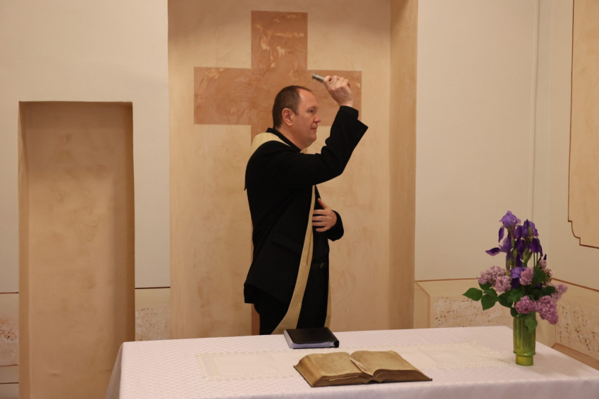 Az évtizedek óta közösségi térként szolgáló, korábban fehér falú, dísztelen helyiségből a Baranya Megyei SZC Pollack Mihály Technikum és Kollégium oktatója, Battyányi József tervezett az imádsághoz méltó, szakrális teret. A 2023-ban Szakképzésért Apáczai Csere János-díjjal elismert oktató a munkálatokat a festő szakmát tanuló elítéltekkel együtt valósította meg.