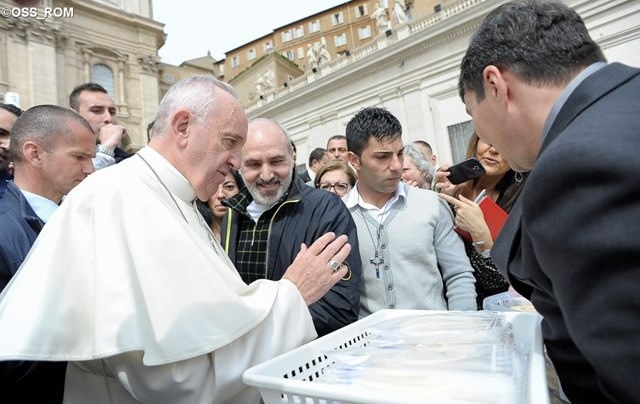 Az április 9-ei pápai audiencián jelen volt az a három elítélt Milánóból, akik részt vesznek A kenyér értelme elnevezésű projektben. Olaszország legnagyobb börtöneiben egy olasz alapítvány ostyagyártó műhelyt létesített. A szombati rendkívüli általános kihallgatáson az elítéltek átadtak Ferenc pápának 12 ezer ostyát, amelyet ők készítettek. A Szentatya megígérte, hogy konszekrálja azokat egy általa bemutatott szentmisén.