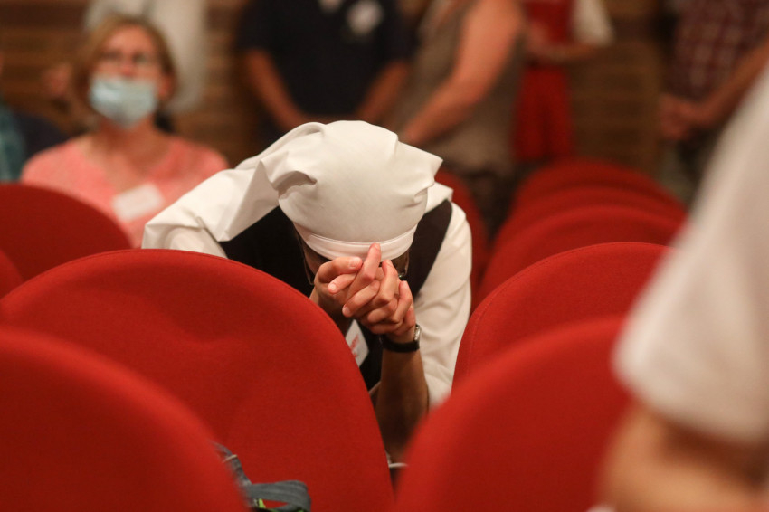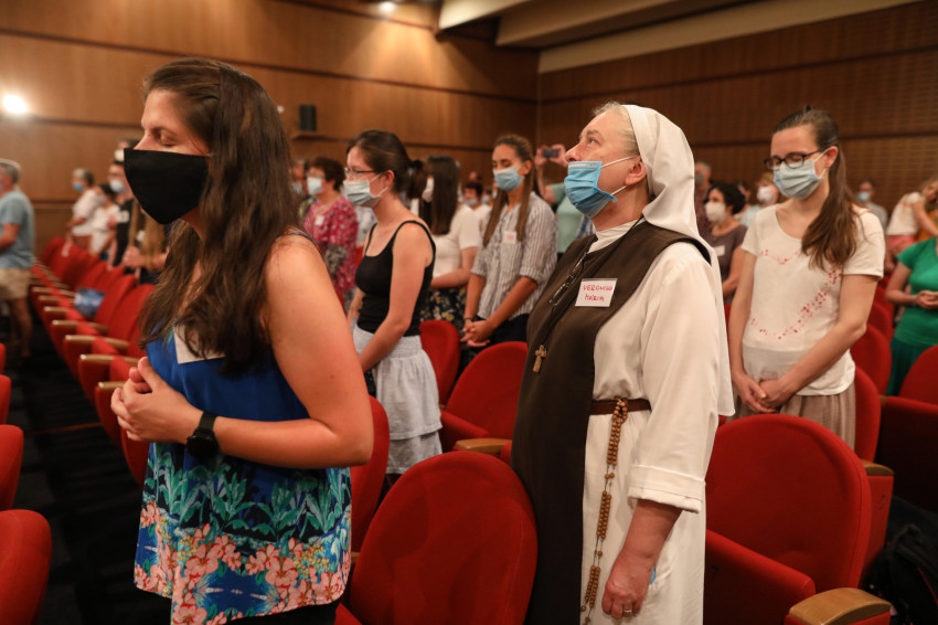 Maszkban is lehet zsolozsmát énekelni. Ezt bizonyítja az a 130 imádkozó, akik megtöltik az veszprémi érseki főiskola dísztermét. Nagy az igény a találkozásra, a lelki táplálékra, hiszen ennyien még soha nem jelentkeztek a Betánia Napokra annak ötéves történetében. Az egész országból érkeztek különböző korú és életállapotú résztvevők. Részben a Nyolc Boldogság Közösség nagy lelki családjának hozzátartozói, de a lelkiségükkel most ismerkedő újonc érdeklődők is. A szerzetesek mellett paptestvérek is vannak a résztvevők között, köztük Mohos Gábor, az Esztergom-Budapesti Főegyházmegye segédpüspöke.