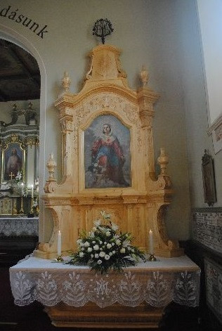 A Szűz Mária szeplőtelen szívét ábrázoló képet keretező alkotás 55 éves tervrajz alapján készült, két erdélyi mester, Péter Sándor és György Gábor munkája.