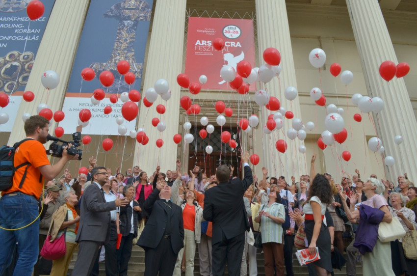 A megnyitón, amelyen a Junior Prima-díjas Anima Musicae Kamarazenekar Vivaldi és Mozart darabjait adta elő, az ünnepélyes köszöntők sorát Lackfi János Prima Primissima és József Attila-díjas költő, író zárta. Külön ez alkalomra született, a művészetet, a szakralitást és magát a programsorozatot magyarázó humoros írásában úgy fogalmazott: „az Ars Sacra az, ahol még a szentek is fesztiváloznak.” Végül a Nemzeti Múzeum lépcsőiről – a jelenlévők általános derültségére – mintegy kétszáz, a rendezvényt jelképező angyalkával díszített léggömb emelkedett a magasba, ezzel az Ars Sacra Fesztivál hivatalosan is kezdetét vette.