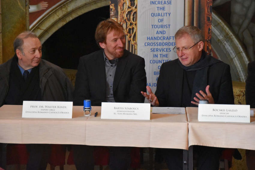 A szerződés ünnepélyes aláírására a székesegyház karzati részén, az orgona mellett került sor. Részt vett az eseményen Pásztor Sándor, a Bihar Megyei Tanács elnöke, Dumitru Sim, a Bihar Megyei Turisztikai Desztináció Menedzsment Ügynökség ügyvezetője, Walter Kindl, az egyházmegye szakmai tanácsadója ebben a projektben, valamint Csorba Sándor projektmenedzser.