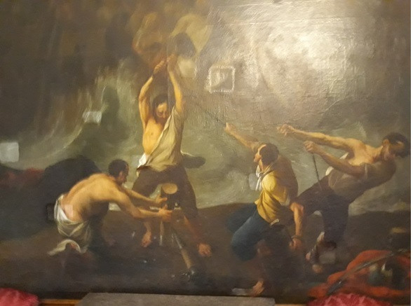 A következő festmény Pál máltai hajótörését ábrázolja. A partot érés perceit jeleníti meg a kép, rendkívül erőteljes feldolgozással.