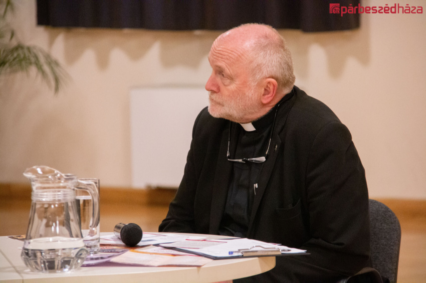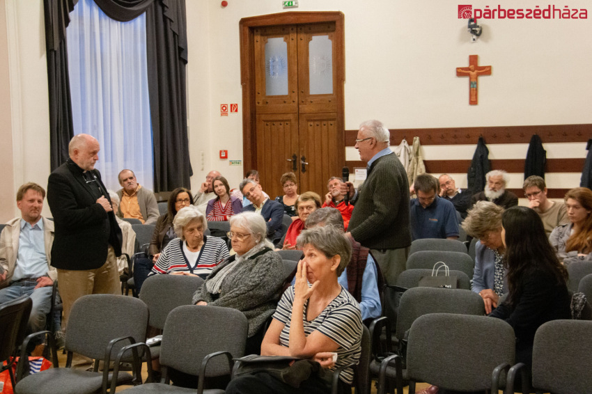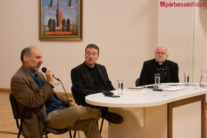 A vetítés után Sajgó Szabolcs SJ, a Párbeszéd Házának igazgatója a közönség bevonásával beszélgetett Lázár Kovács Ákos esztétával, médiakutatóval és Makláry Ákos görögkatolikus pappal, a KÉSZ (Keresztény Értelmiségiek Szövetsége) elnökével.