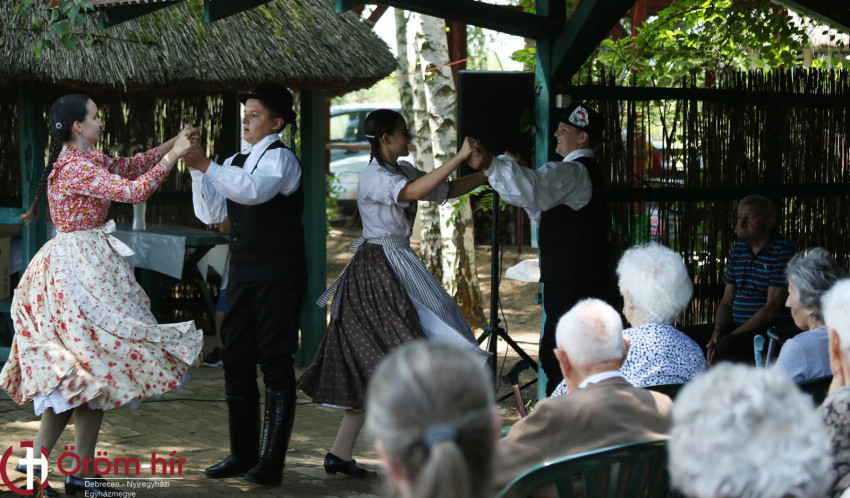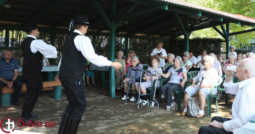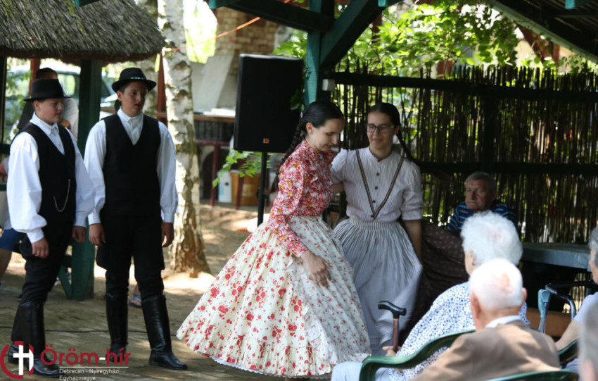 A püspöki szentmise után a lakók újabb élményben részesülhettek: a fiatalságukat megidézendő a nyíregyházi Szabolcsi Néptáncegyüttes négy tagja örvendeztette meg őket, Sztancs Attiláné vezetésével: a fiúk korcsos néptáncot jártak, majd a lányokkal együtt a közeli település hagyományát, a bökönyi táncokat adták elő ismerős dallamokra.