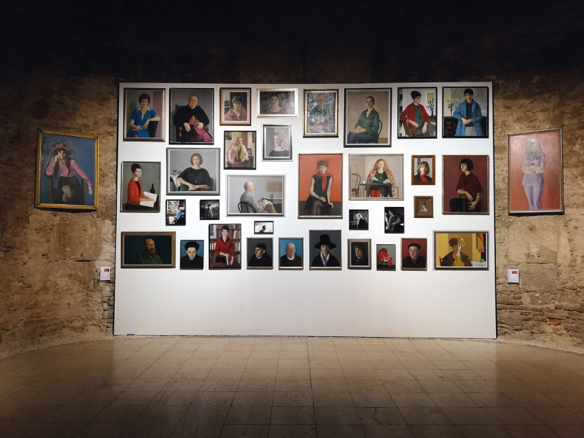 De, térjünk vissza a Kiscelli Múzeumba! A kiállítóterébe belépve a szemközti falon egy óriási képösszeállítást láthatunk 19. századi mintára, úgy, ahogyan a párizsi Salon kiállításain rendezték el a festményeket. Itt csak portrék szerepelnek egymás fölött, kisebbek és nagyobbak is. Akad köztük ismert embert ábrázoló kép is, például az, amelyik Kaján Tibor karikaturistáról (1973) vagy Cserháti József pécsi püspökről (1977) készült. Érdekesség, hogy a modellt ülő Cserháti püspökkel szívélyes viszonyt ápoló Mácsai a maga kedvére megfestette a beöltözés előtt a székre helyezett ornátust és a süveget is. Ezt a képet nem találták a kurátorok, de a Lékai László bíboros díszruháját ábrázoló festményt mint státuszportrét viszont igen – ez A bíboros széke (1983) címmel szerepel a galériában.