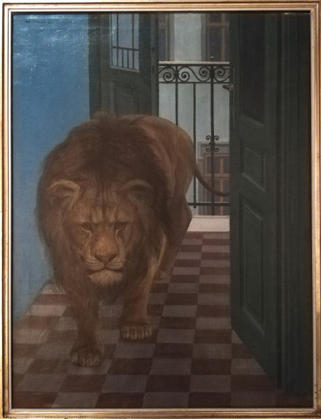 Biztosan sokan ismerik Mácsai lehíresebb képét, az Oroszlán a gangon címűt, ami a mostani kiállításon is látható. Korábban már részletesen írtunk róla a Mértékadó 2020. július 6–12-i számában megjelent cikkünkben. A festmény szinte tökéletes bizonyossággal hozza az ember félelmeit, szorongásait, ráadásul nem csak egy adott kor tükrében, hiszen a ma emberének is van mitől félnie. Mácsai szürrealisztikus festményén hirtelen, a semmiből bukkan fel az oroszlán egy pesti bérház emeletének körfolyosóján, ami elvileg lehetetlen. A kép üzenete nem is lehetne ennél kifejezőbb. A kiscelli kastély kiállítóterében sajnos elég sötétben láthatjuk ezt a képet és más alkotásokat is, a jobb megvilágításra nagy szükség lett volna.