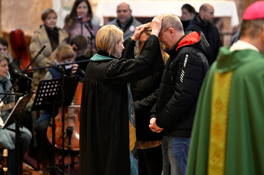 A a jelen lévő házaspárokat a homília után Székely János püspök, Torma-Hasza Mónika evangélikus lelkész és Jakab Bálint református lelkész közösen áldották meg.