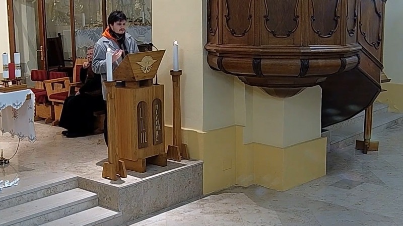 Gáspár István atya Istenismeret, szentháromságos szeretet című videós elmélkedése után kiscsoportokban folytatták a gondolkodást. Együttlétüket közös énekléssel és az Úrangyala elimádkozásával zárták.