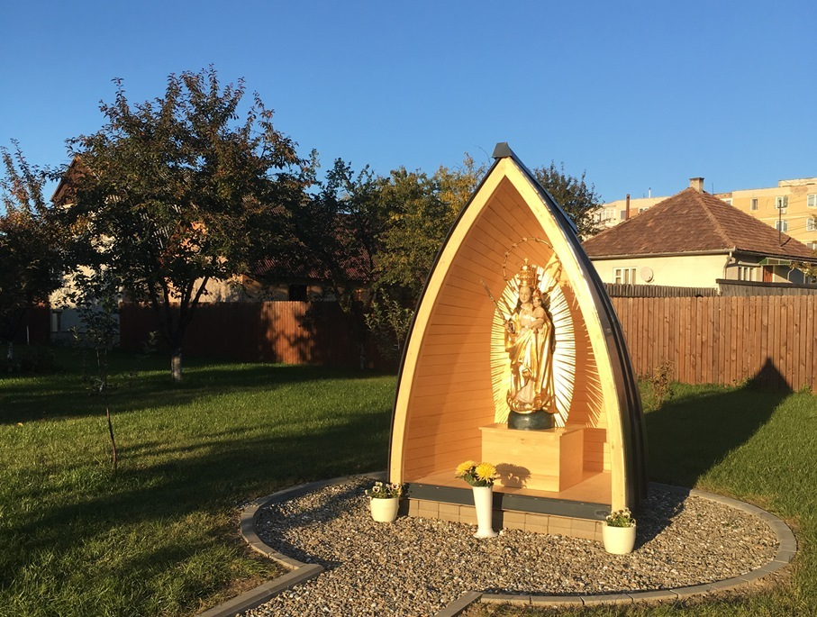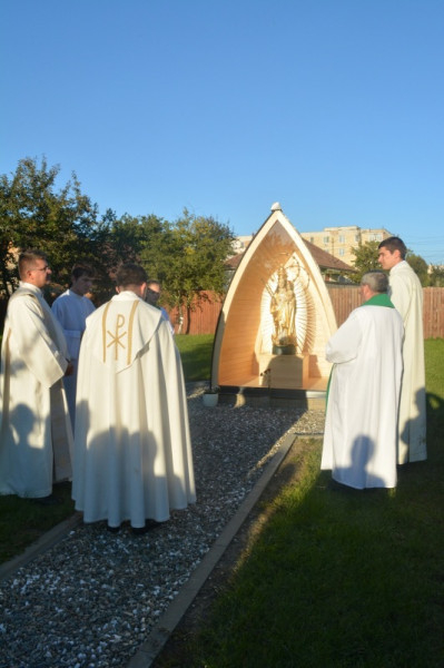 A zarándoklat végén a Szent István-plébánia kertjében megáldják a Csíksomlyói Szűzanya-szobor másolatát. Érzem: megérkeztem. Napi öt percre ide betérhetek, imádkozhatok egy tized rózsafüzért; nem dudál az ismerős az autóból, nem vonja el a figyelmemet semmi, és égi Édesanyámmal csendben, megélhetem itt a pillanat varázsát.